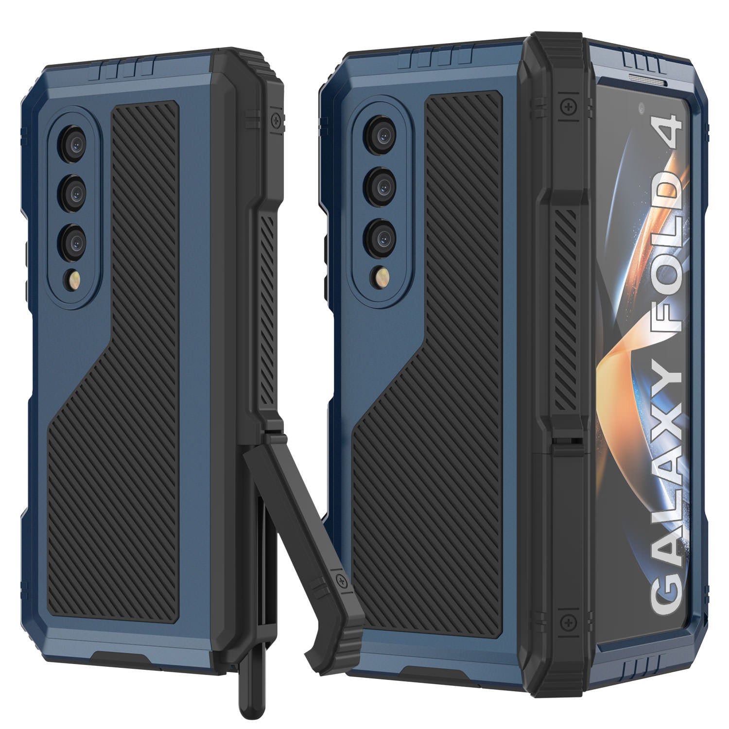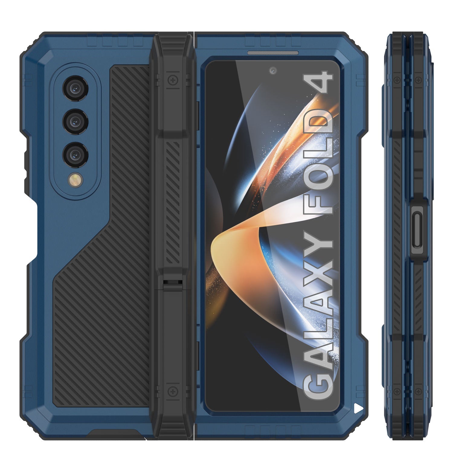 Galaxy Z Fold4 Metal Case, Heavy Duty Military Grade Armor Cover Full Body Hard [Blue]