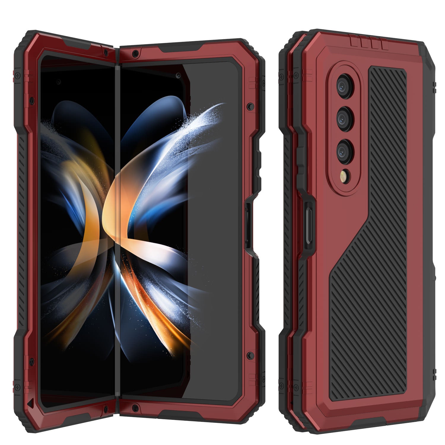 Galaxy Z Fold4 Metal Case, Heavy Duty Military Grade Armor Cover Full Body Hard [Red]