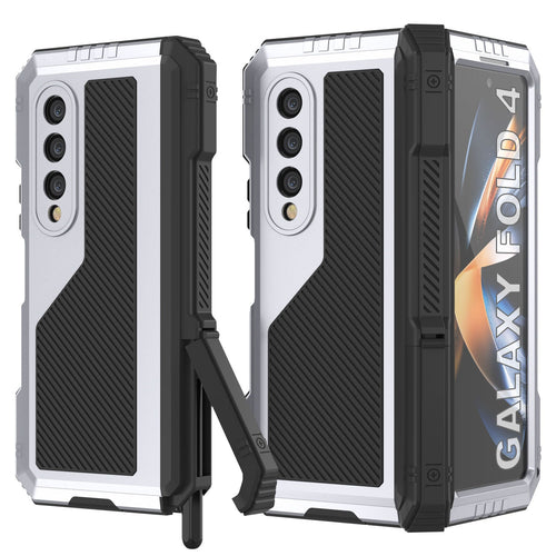 Galaxy Z Fold4 Metal Case, Heavy Duty Military Grade Armor Cover Full Body Hard [White]