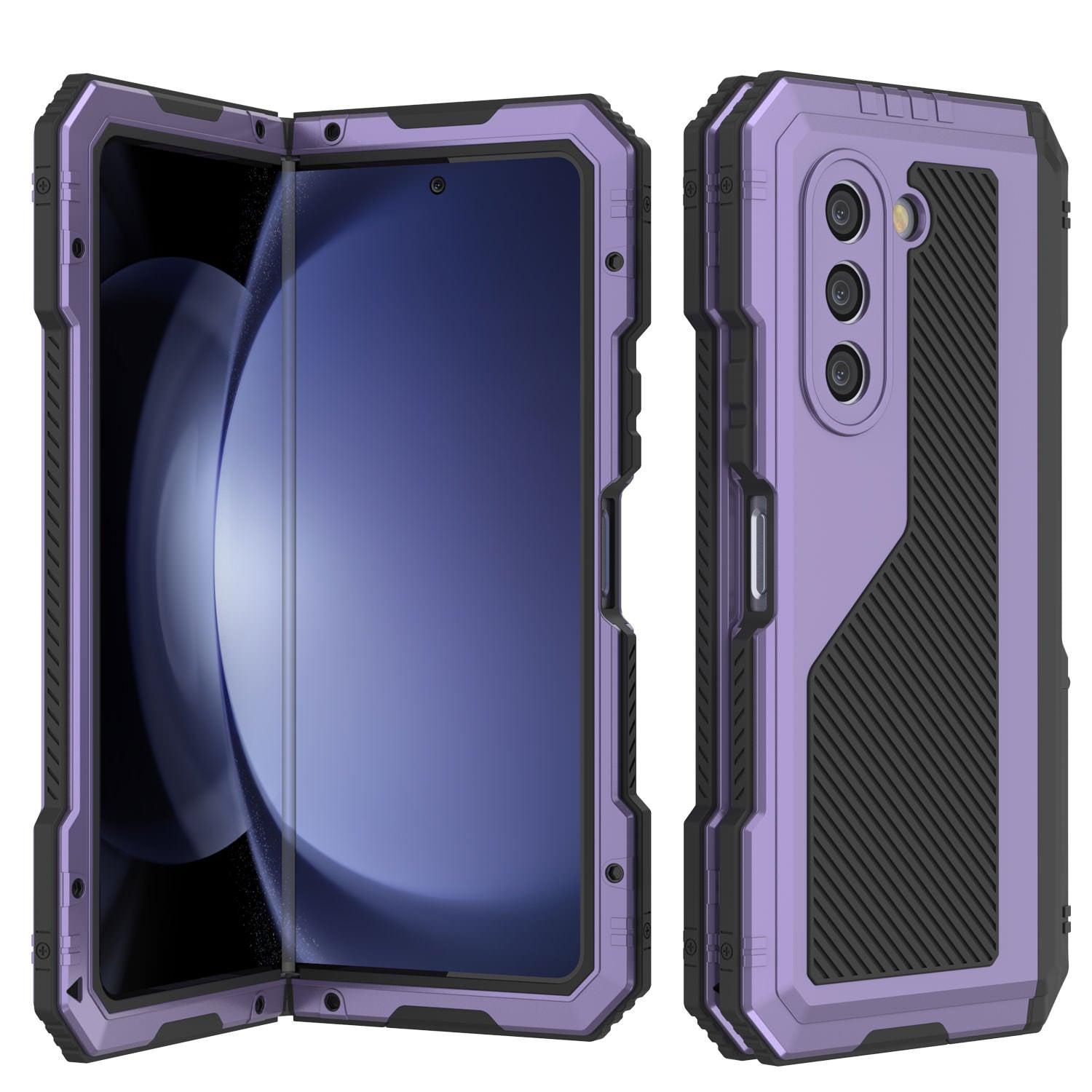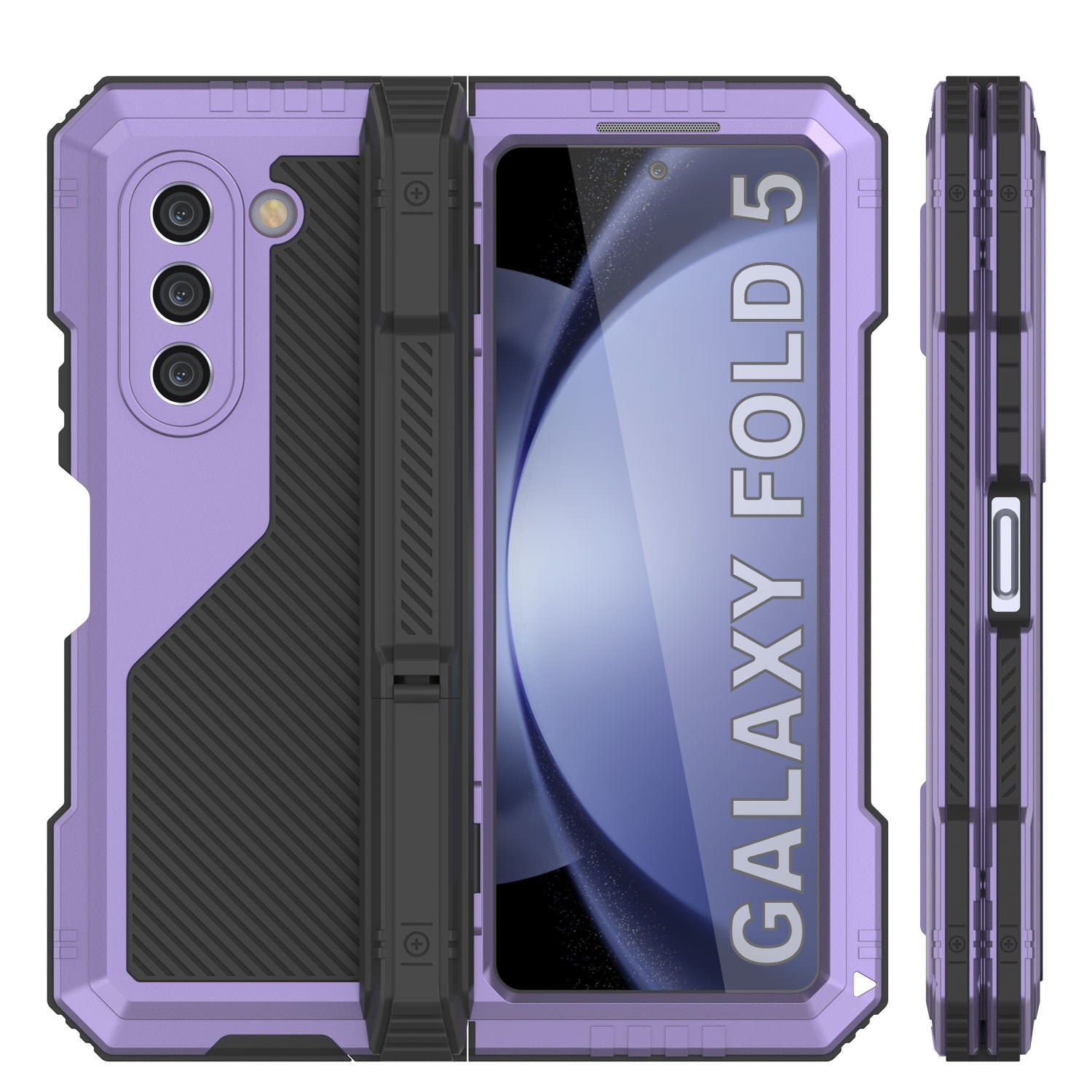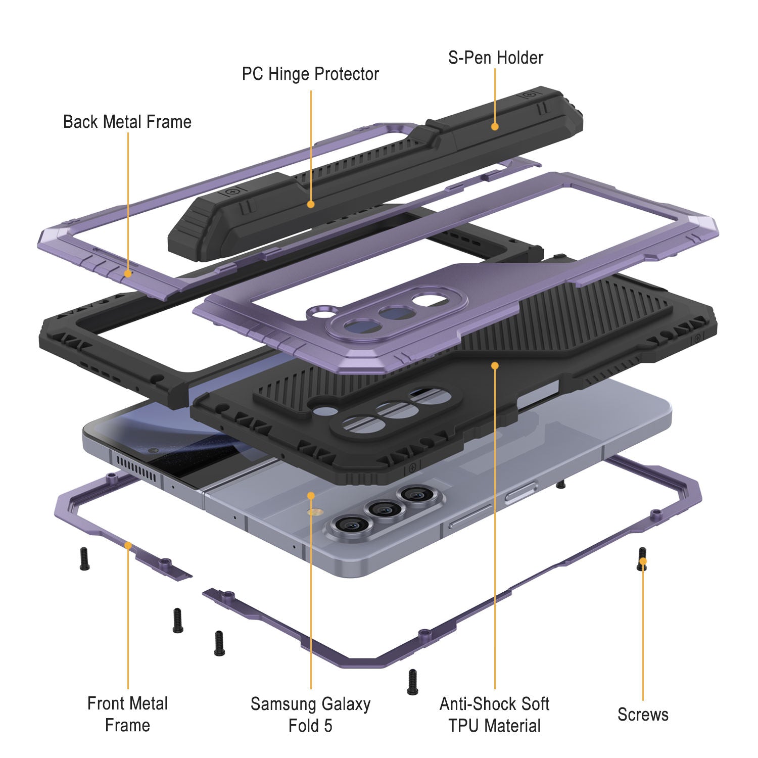 Galaxy Z Fold5 Metal Case, Heavy Duty Military Grade Armor Cover Full Body Hard [Purple]