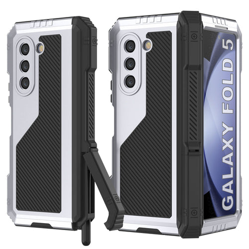 Galaxy Z Fold5 Metal Case, Heavy Duty Military Grade Armor Cover Full Body Hard [White]