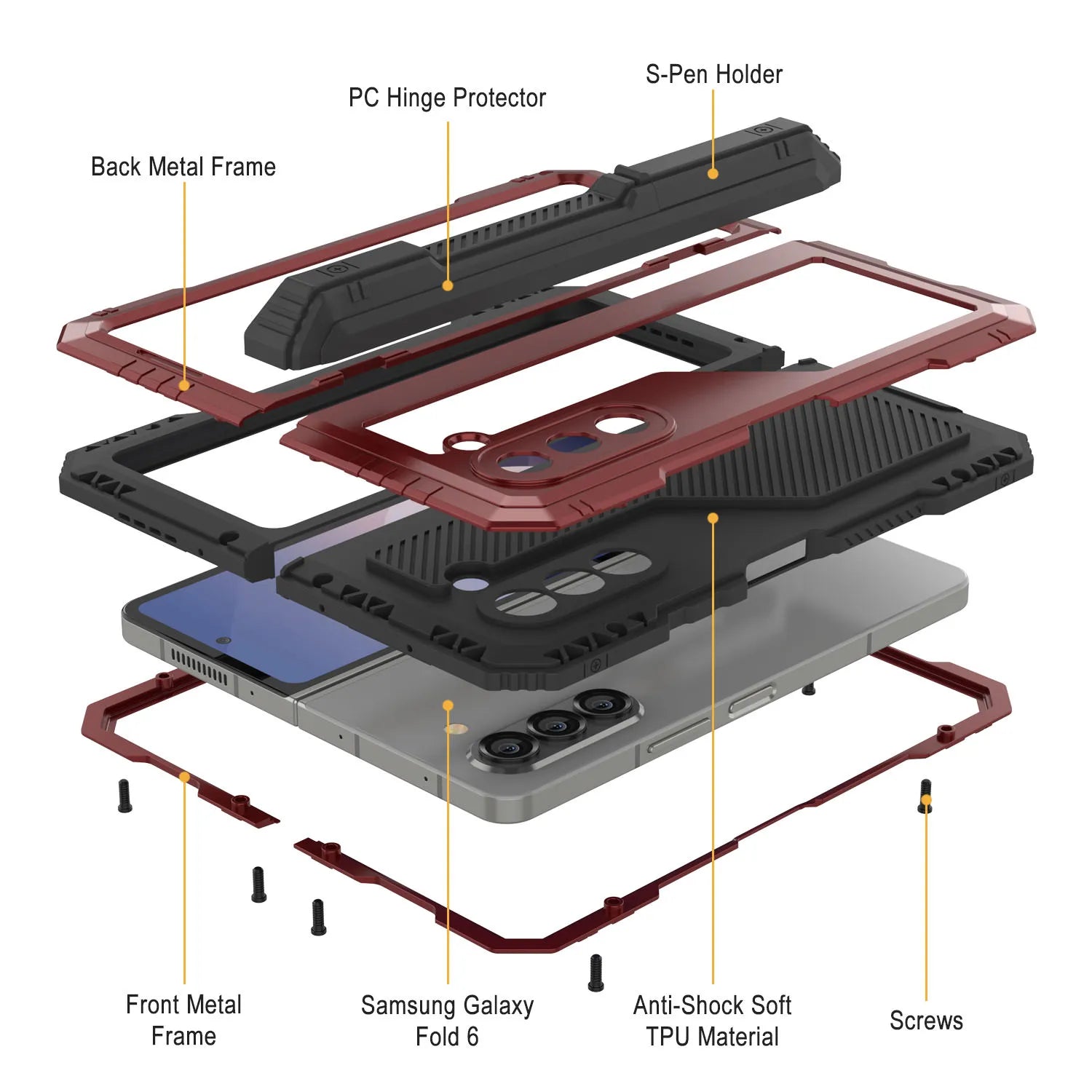 - ★ ULTIMATE DUAL LAYER PROTECTION: Ultra tough front and back aluminum frames enclose a shock-absorbing TPU layer resulting in superior protection from drops and falls | Additional CAMERA LENS PROTECTION due to raised bevel |HONEYCOMB COOLING SYSTEM: Specially molded cooling grooves in the back of the case ensure heat dissipation to protect your Galaxy Z Fold6 from damage due to overheating
