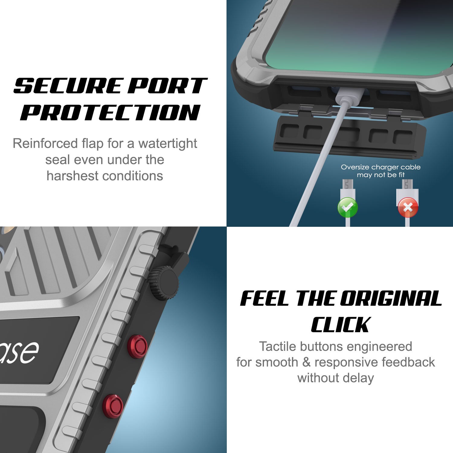 - ★ PRECISION CUT-OUTS: Built-in PORT COVERS to keep out dust and debris | CRYSTAL CLEAR COMMUNICATION: Unlike many other metallic cases your Punkcase Metallic Extreme 3.0 case will not interfere with your signal allowing for continuous and stable connections without interruption.|NON-SLIP FURROW LININGS for an extra-secure grip even underwater | Built-In KICKSTAND for hands-free viewing | WIRELESS CHARGING COMPATIBLE
