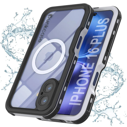iPhone 16 Plus Waterproof IP68 Case, Punkcase [White] [StudStar Series] [Slim Fit] [Dirtproof]