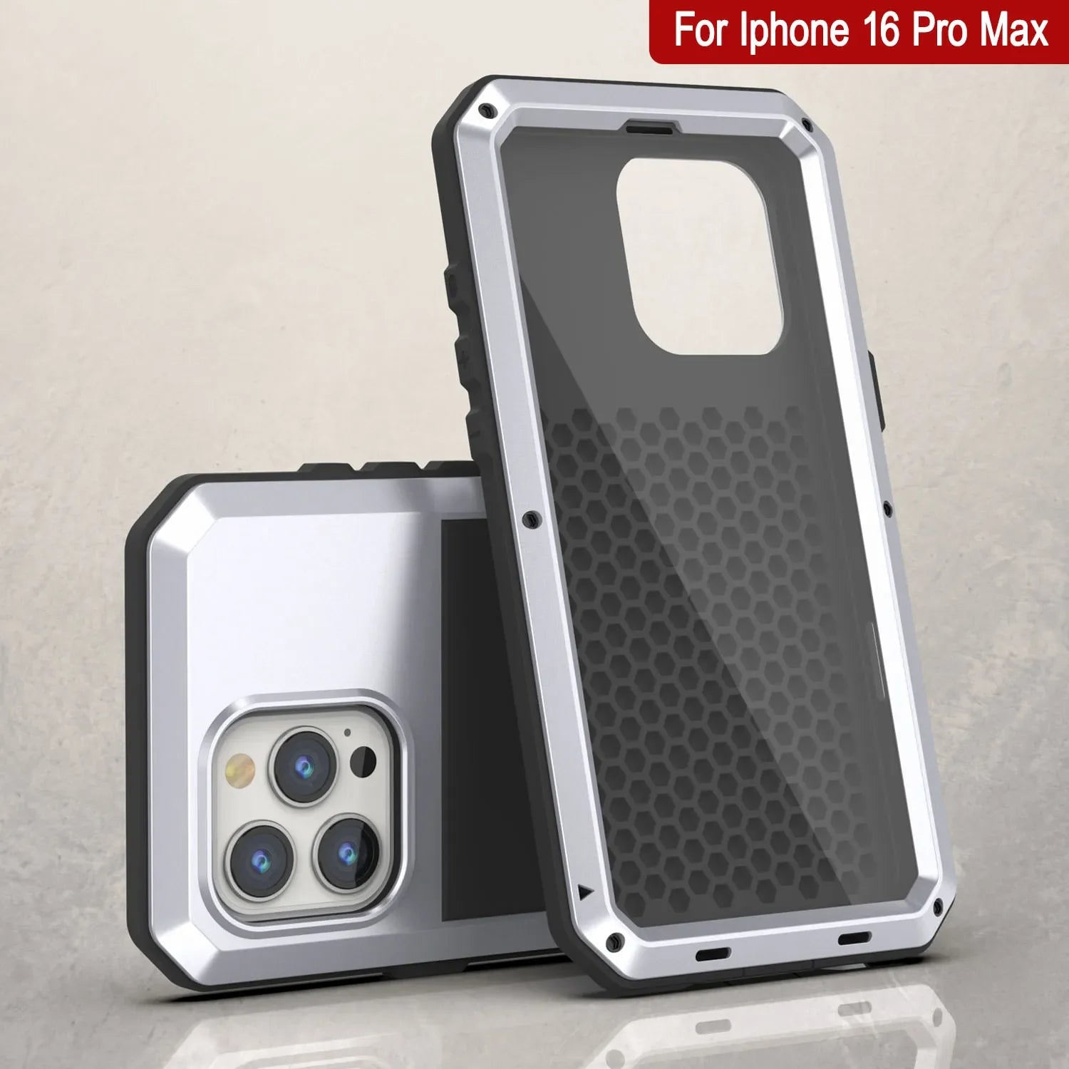 - ★ ULTIMATE DUAL LAYER PROTECTION: Ultra tough front and back aluminum frames enclose a shock-absorbing TPU layer resulting in superior protection from drops and falls | Additional CAMERA LENS PROTECTION due to raised bevel |HONEYCOMB COOLING SYSTEM: Specially molded cooling grooves in the back of the case ensure heat dissipation to protect your iPhone 16 Pro Max from damage due to overheating