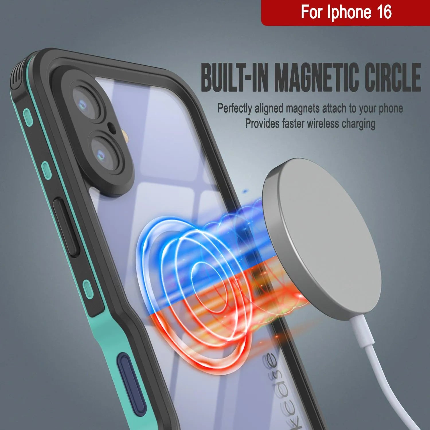 iPhone 16 Waterproof Case, Punkcase [StudStar Series] [Slim Fit] [IP68 Certified] [Shockproof] [Dirtproof] [Snowproof] Armor Cover for Apple iPhone 16 [Teal]