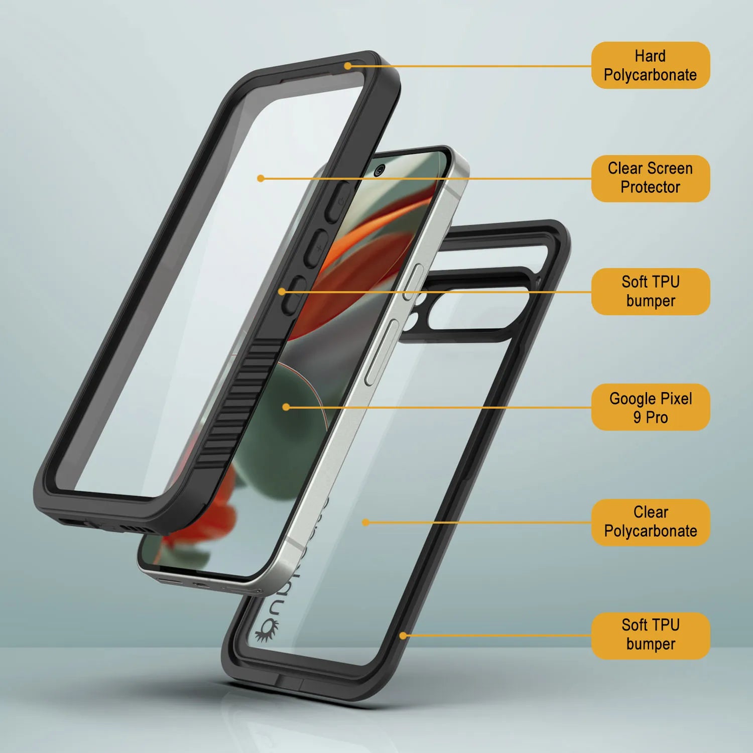 - ★ ULTRA SLIM FIT WITH BUILT-IN FUNCTIONALITY: Your Extreme Google Pixel 9 Pro case offers ultimate protection without the bulk| BUILT-IN SCREEN PROTECTOR: Imperceptible scratch-resistant & HD-clear screen guard for a lucid retina display with uncompromised TOUCH ID sensitivity | RAISED BEVEL: Extra Protection against drops | UNPARALLED SOUND QUALITY: Newly designed sound membranes will keep your phone waterproof whilst ensuring crystal clear communications.