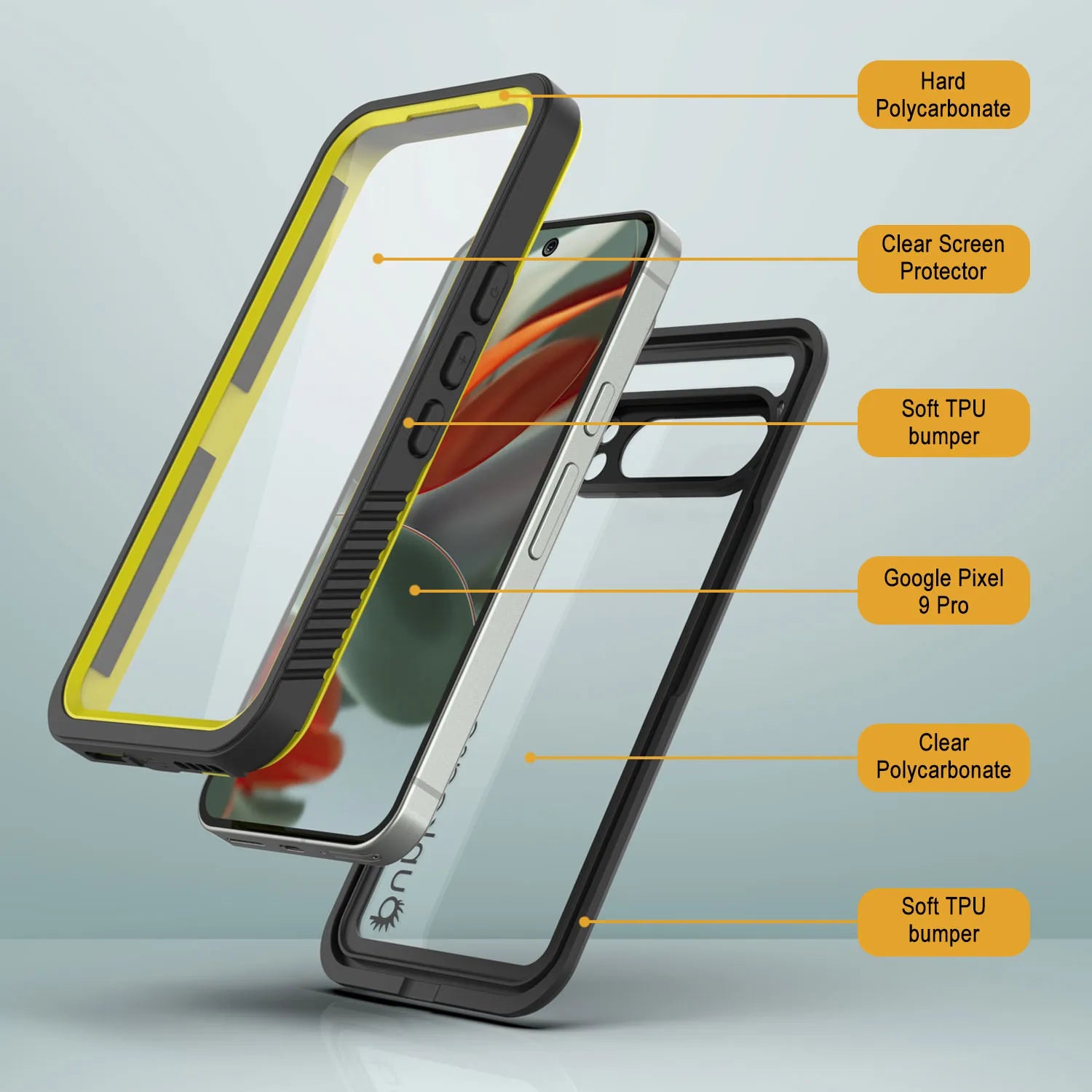 Google Pixel 9 Pro Waterproof Case, Punkcase [Extreme Series] [Slim Fit] [IP68 Certified] [Shockproof] [Snowproof] [Dirtproof] Armor Cover W/ Built In Screen Protector for Google Pixel 9 Pro (6.3") (2024) [Yellow]