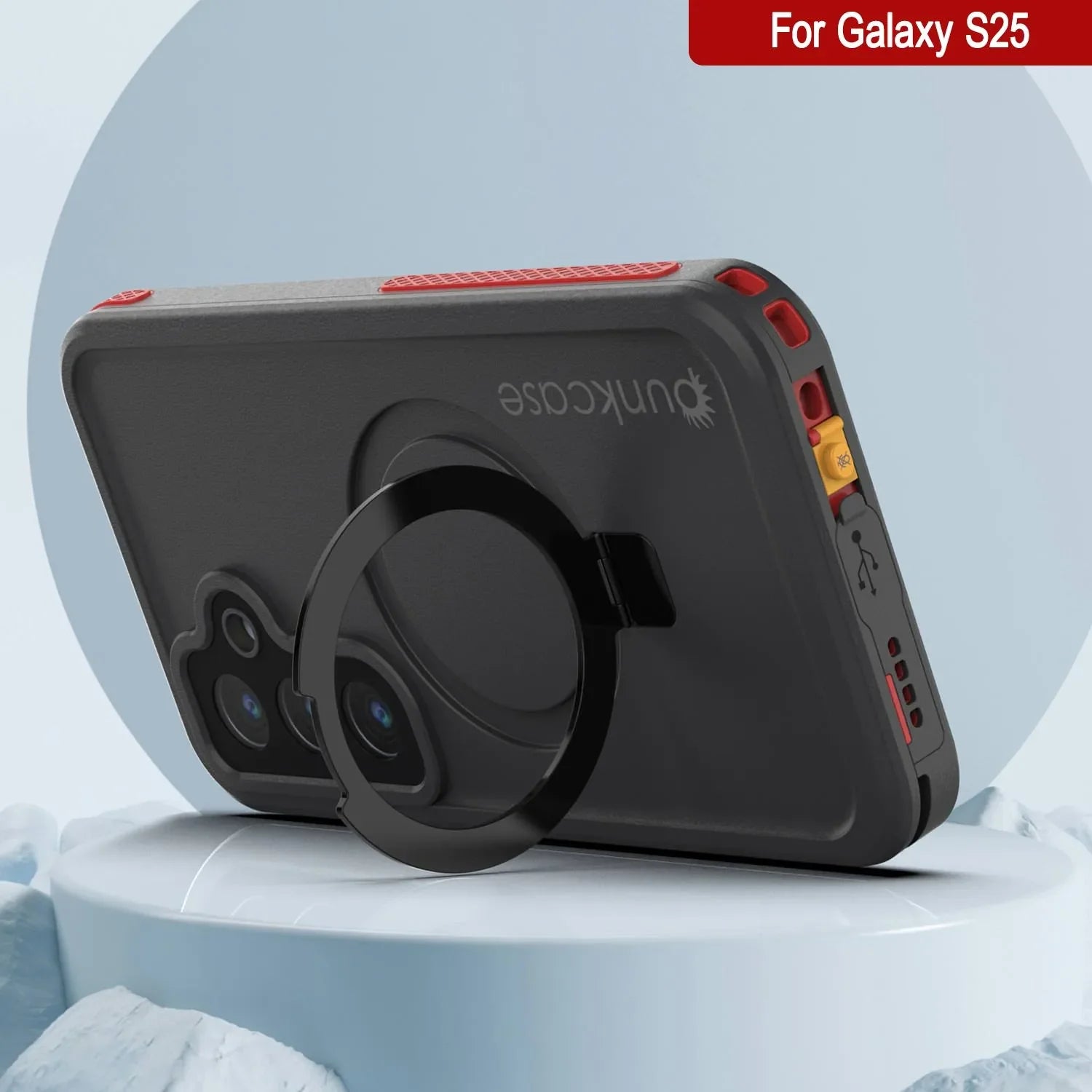 PunkCase for Samsung Galaxy S25 Waterproof Case [Kickstud 2.0 Seriess] Protective IP68 Certified Cover W/Screen Protector & Kickstand | Ultra Slim 360 Protection for Samsung Galaxy S25 (6.2") (Red)