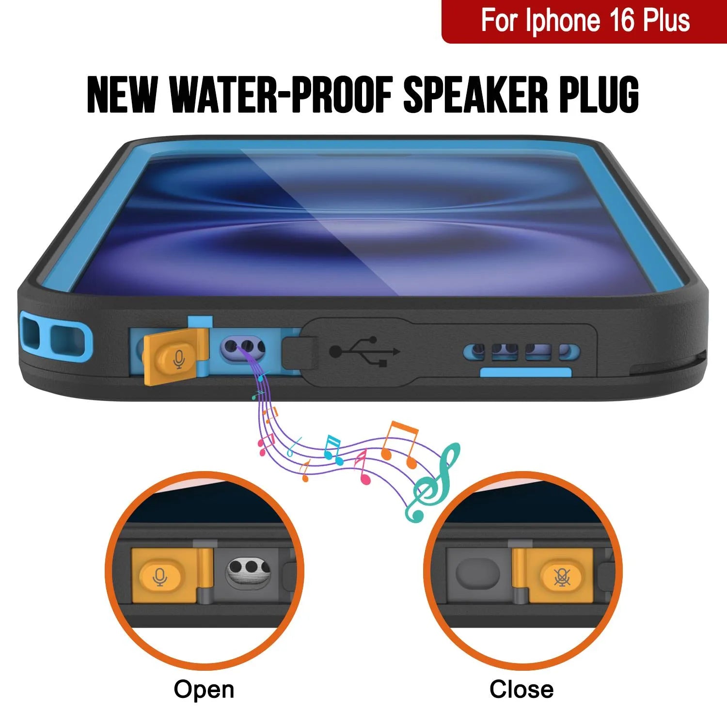 PunkCase for iPhone 16 Plus Waterproof Case [Kickstud 2.0 Seriess] Protective IP68 Certified Cover W/Screen Protector & Kickstand | Ultra Slim 360 Protection for iPhone 16 Plus (6.7") (Blue)