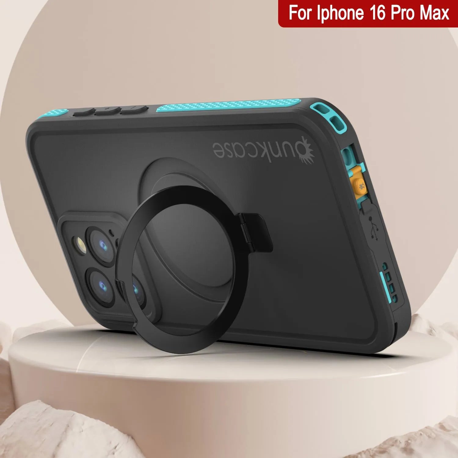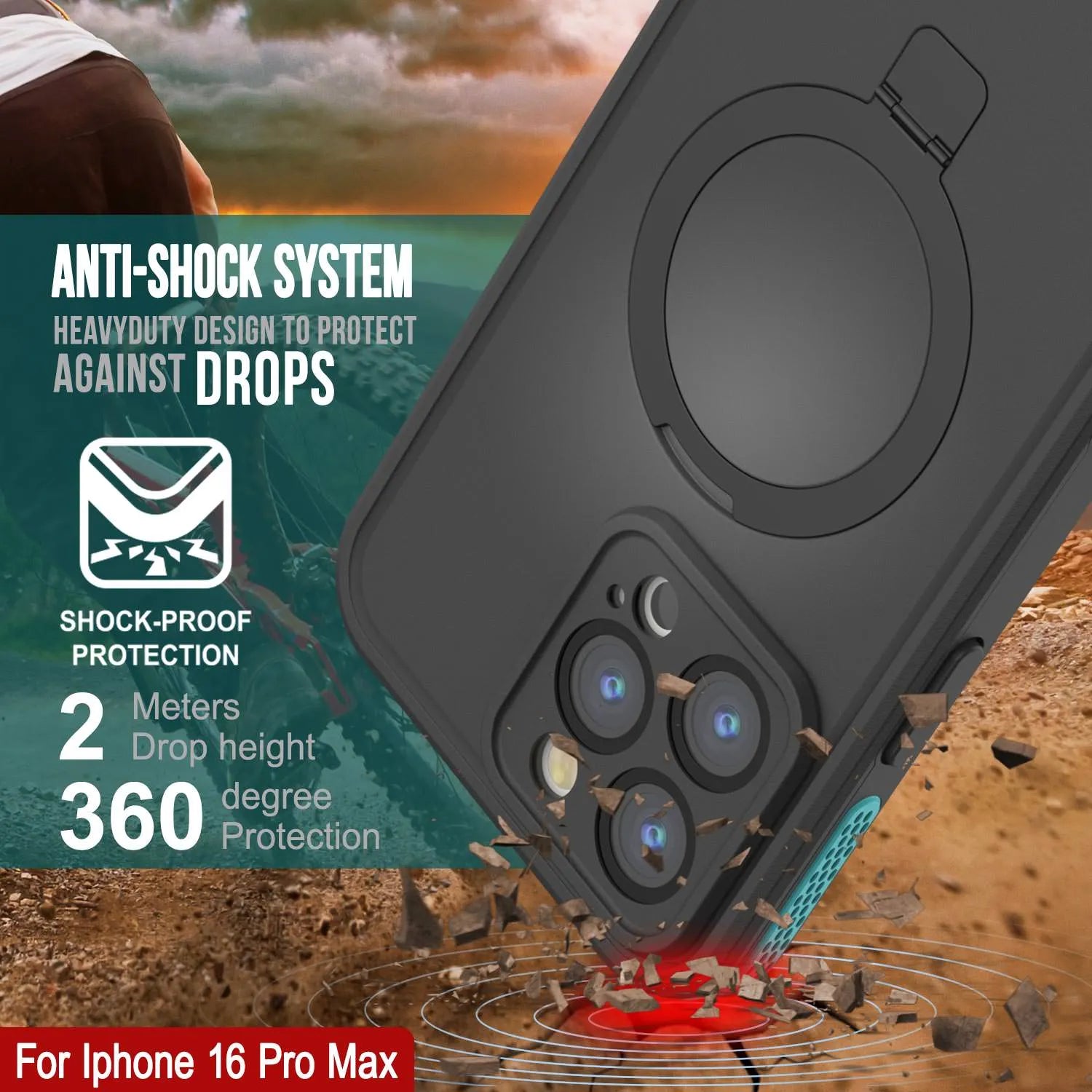 PunkCase for iPhone 16 Pro Max Waterproof Case [Kickstud 2.0 Seriess] Protective IP68 Certified Cover W/Screen Protector & Kickstand | Ultra Slim 360 Protection for iPhone 16 Pro Max (6.9") (Teal)