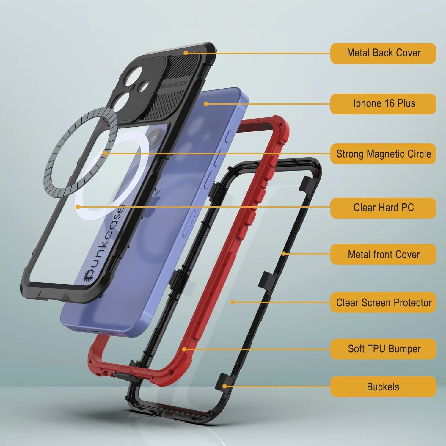 Punkcase iPhone 16 Plus Waterproof Aluminum Case [Metal Extreme 2.0 Series] IP68 Rugged Bumper Cover W/Buillt in Screen Protector | Ultimate Protection for Your iPhone 16 Plus (6.7")
