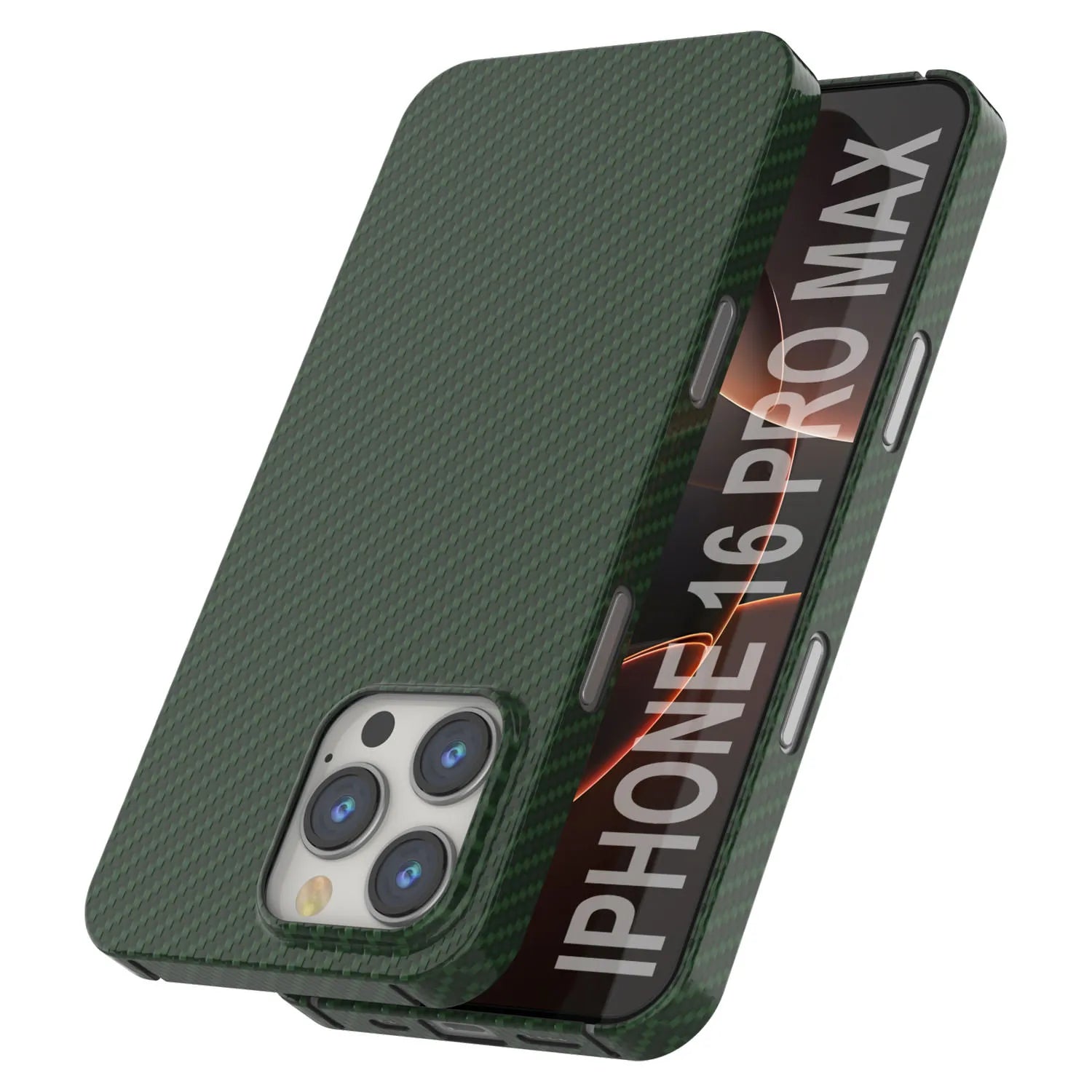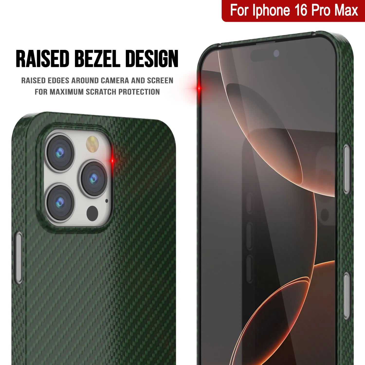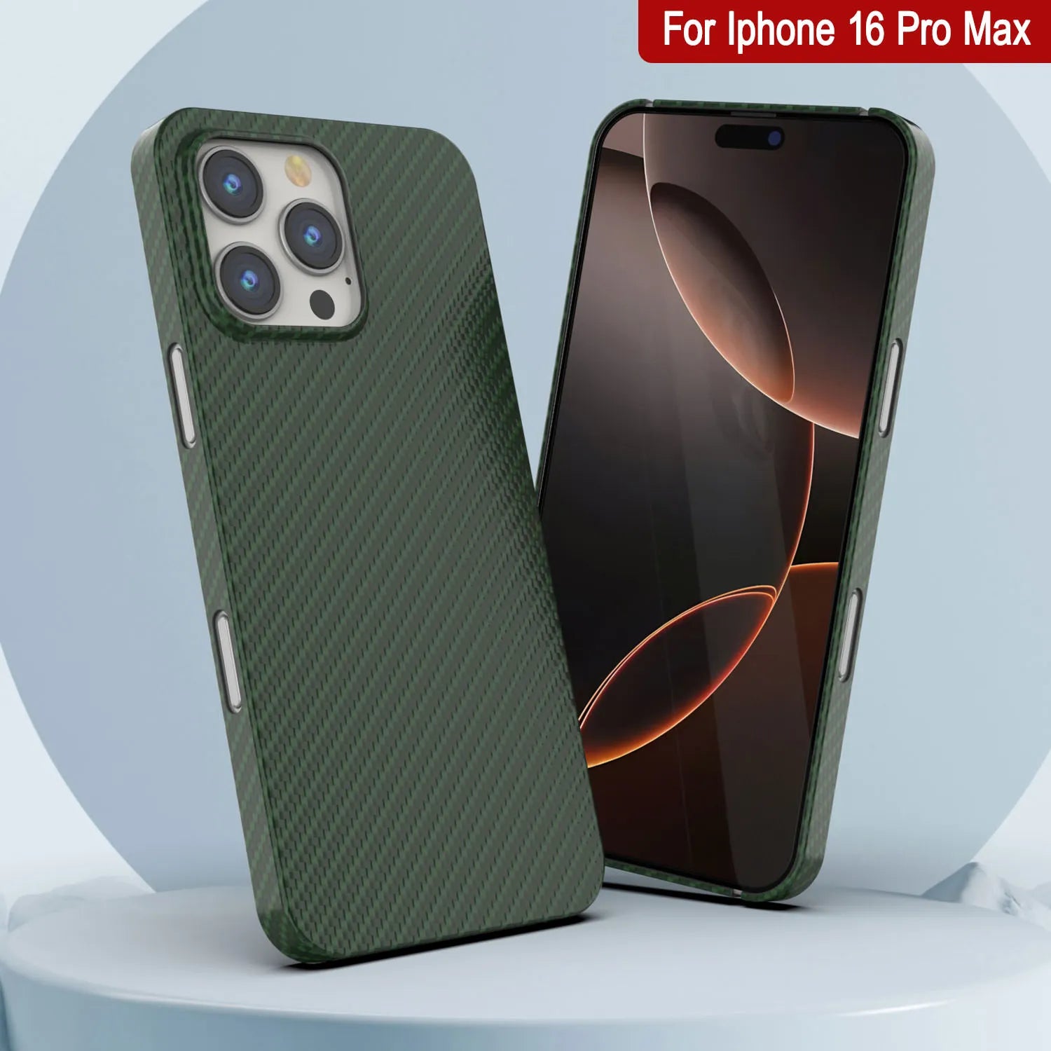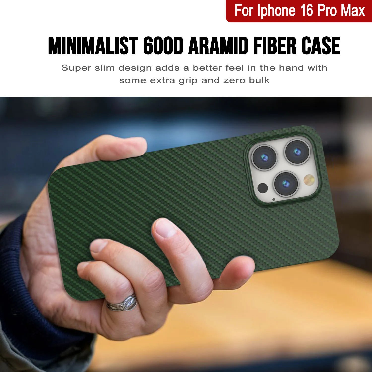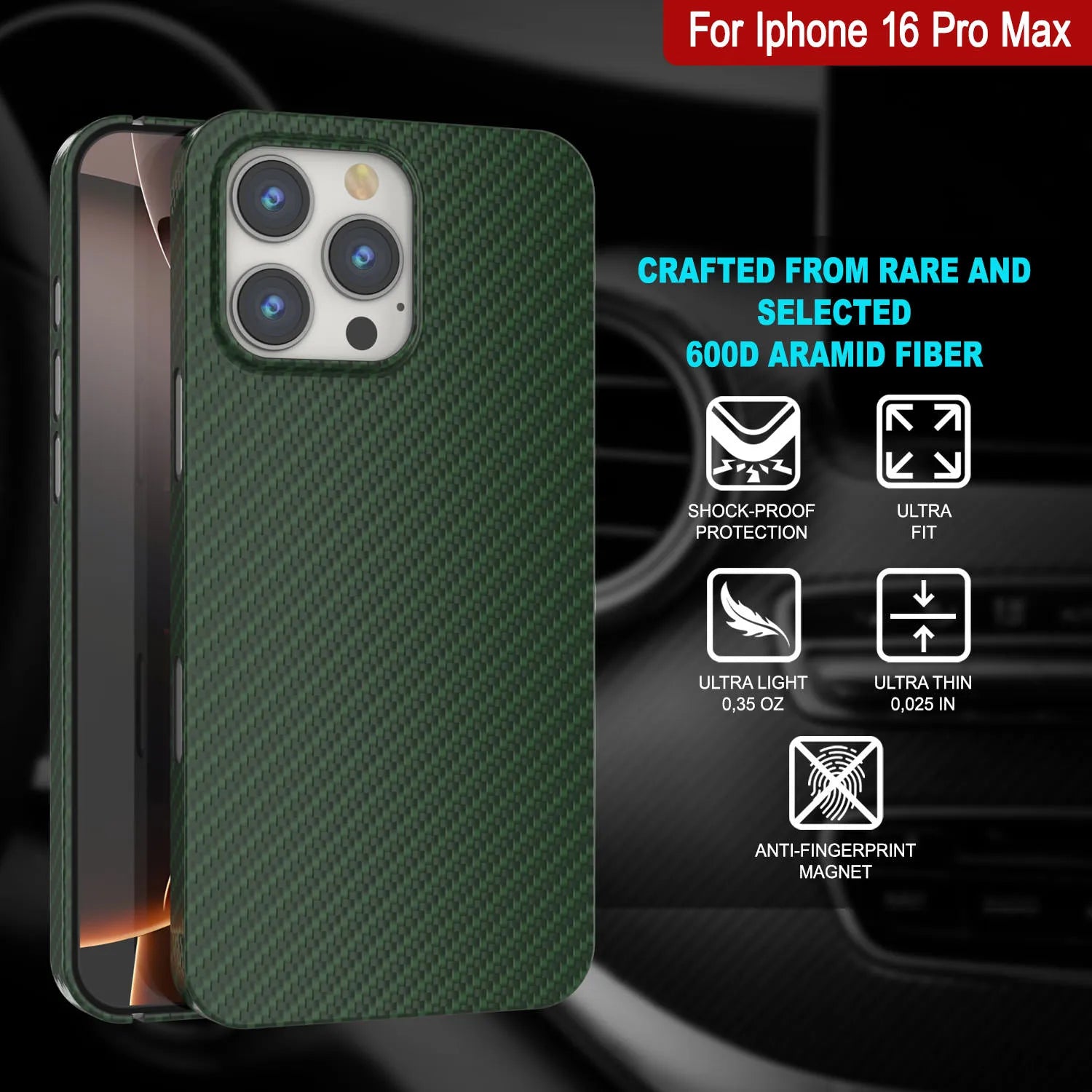 Punkcase for iPhone 16 Pro Max Carbon Fiber Case [AramidShield Series] Ultra Slim & Light Kevlar Skin Made from 100% Aramid Fiber | Military Grade Protection for Your iPhone 16 Pro Max (6.9") [Green]