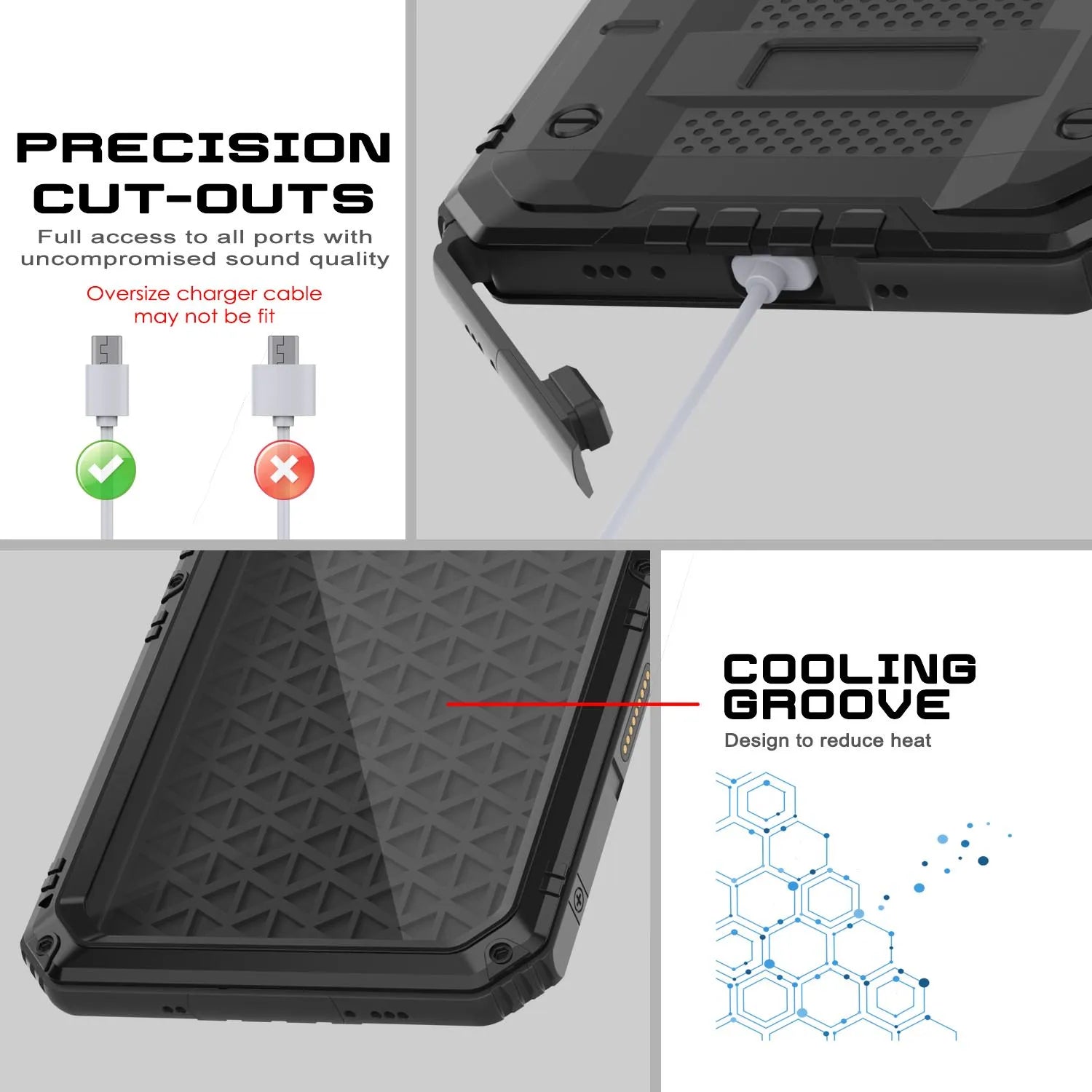 - ★ PRECISION CUT-OUTS: Built-in PORT COVERS to keep out dust and debris | CRYSTAL CLEAR COMMUNICATION: Unlike many other metallic cases your Punkcase Metal Extreme 3.0 case will not interfere with your signal allowing for continuous and stable connections without interruption.| NON-SLIP FURROW LININGS for an extra-secure grip even underwater | Built-In KICKSTAND for hands-free viewing| WIRELESS CHARGING COMPATIBLE
