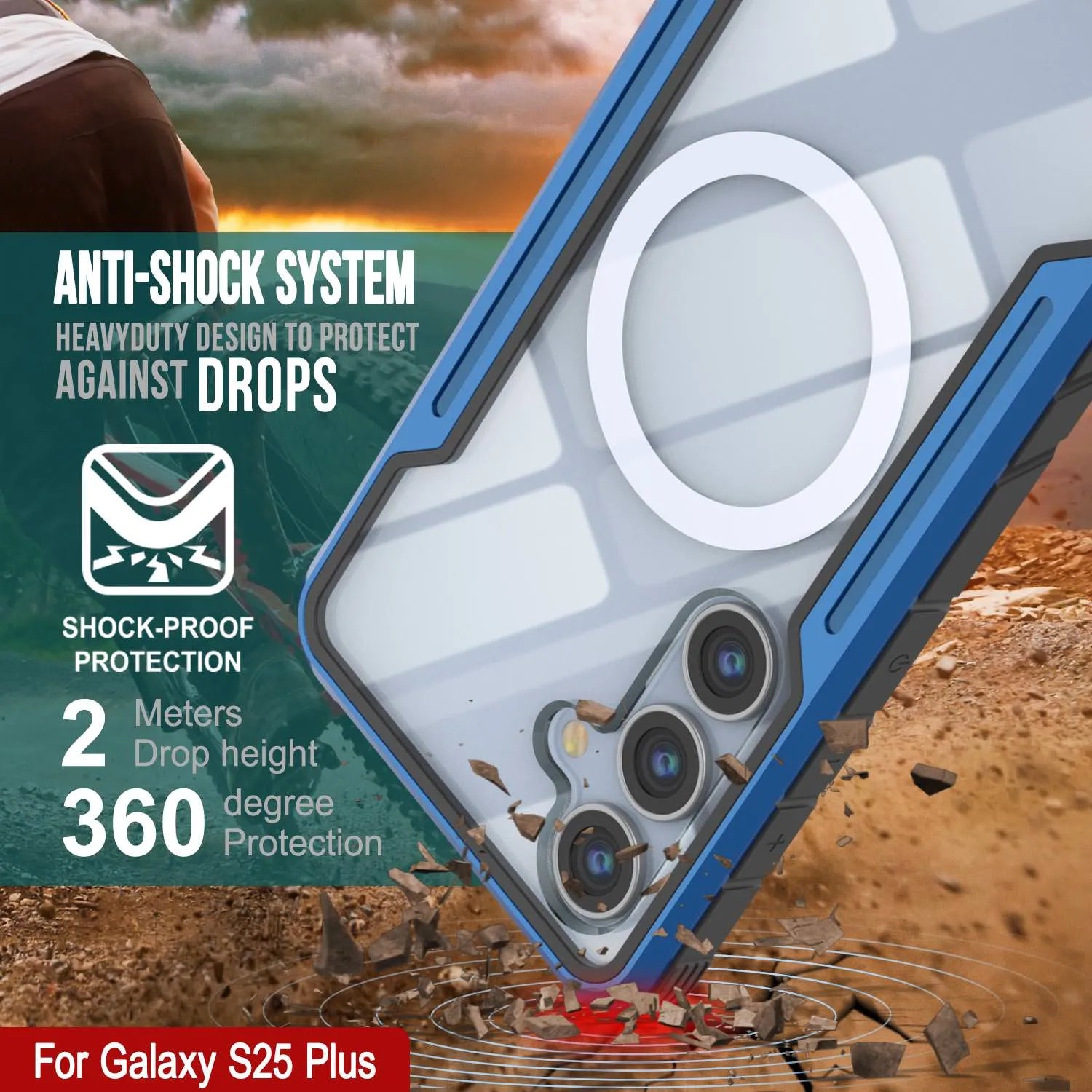 Punkcase Galaxy S25 Plus Case [Armor Stealth Defense Series] Protective Military Grade Multilayer Cover W/Aluminum Frame [Clear Back] Ultimate Drop Protection for Your S25 Plus 5G (6.7") (2025) (Navy Blue)