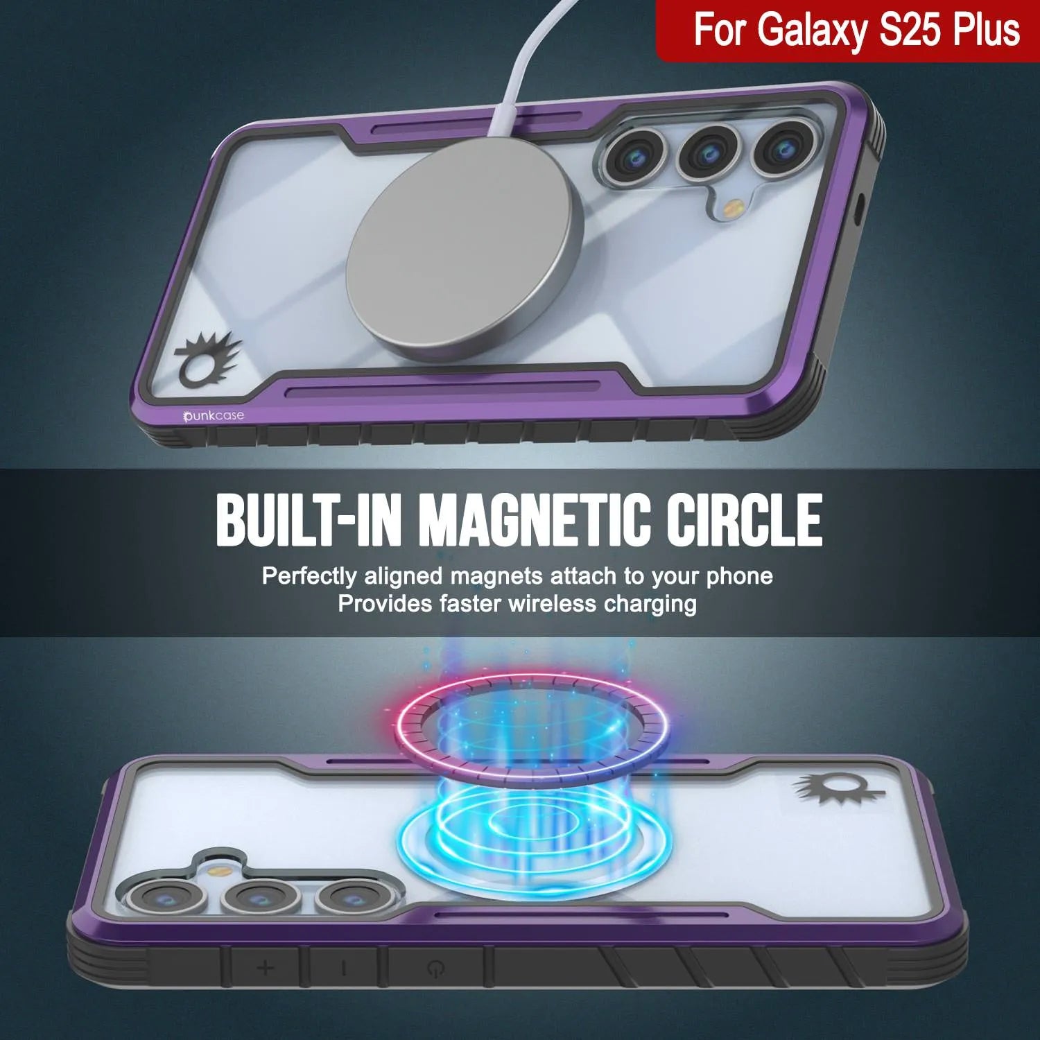 Punkcase Galaxy S25 Plus Case [Armor Stealth Defense Series] Protective Military Grade Multilayer Cover W/Aluminum Frame [Clear Back] Ultimate Drop Protection for Your S25 Plus 5G (6.7") (2025) (Purple)